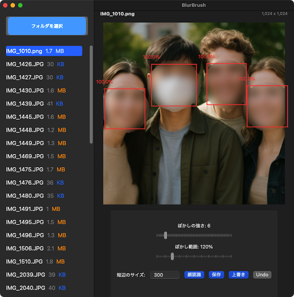BlurBrushは、macOS向けの写真編集アプリケーションで、顔認識技術を活用して写真内の顔を自動的に検出し、ぼかし効果を適用することができます。プライバシー保護や写真の印象を向上させたい場合に最適なツールです。